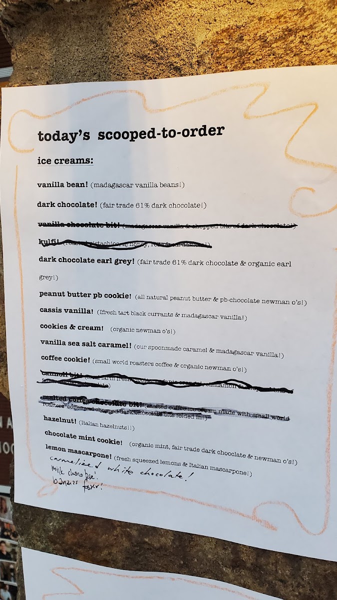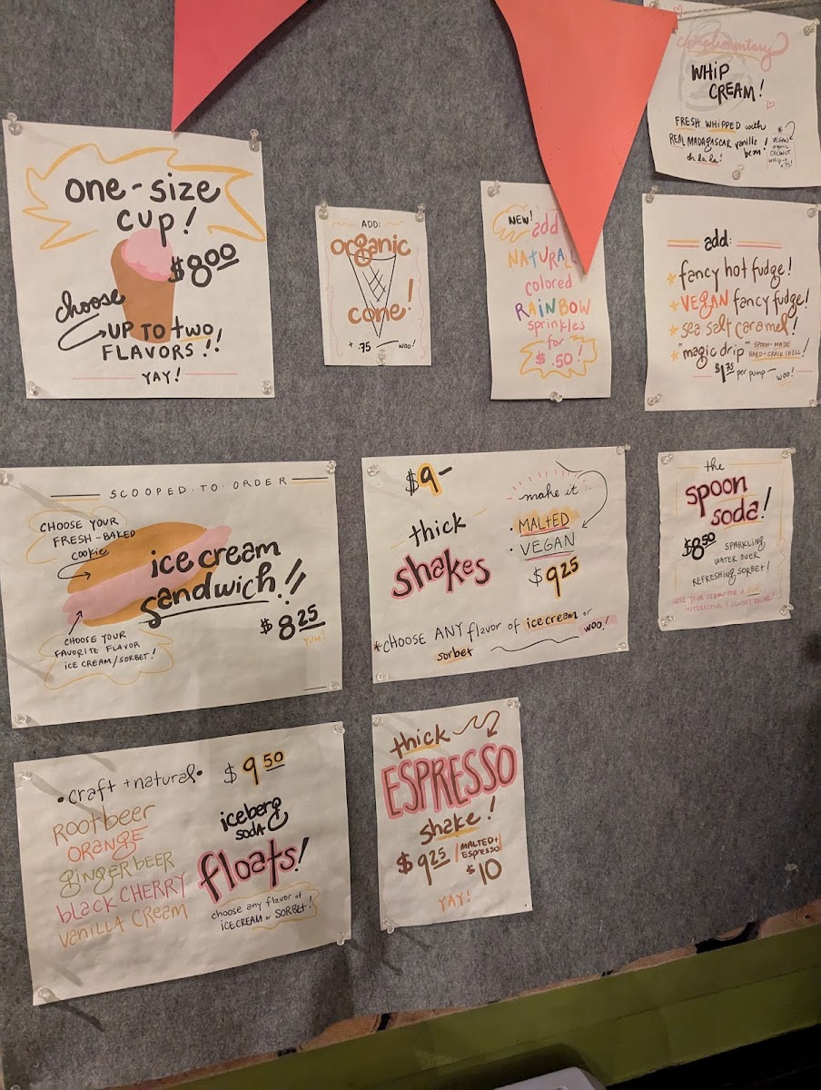 The Bent Spoon offers a thoughtfully crafted menu perfect for those casual moments when a refreshing treat or a comforting drink feels just right. The selection focuses on artisanal ice creams and sorbets, showcasing both classic favorites like Vanilla Bean and Dark Chocolate, alongside more inventive flavors such as Passionfruit, Avocado Lime, and Lavender Mascarpone. Complementing the frozen delights are warm offerings like a variety of hot chocolates—including vegan options and unique twists like Toasted Marshmallow or Mocha—and carefully brewed teas, creating a cozy balance to the menu.